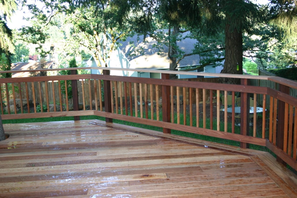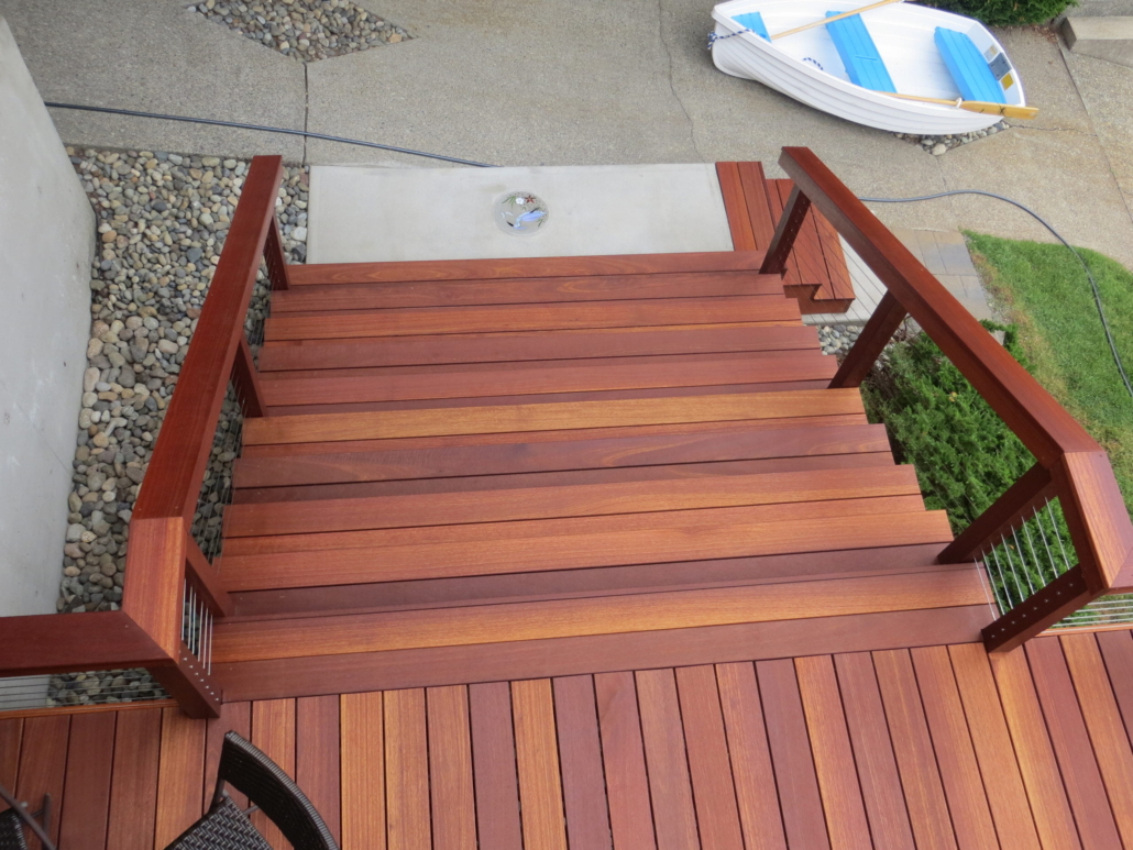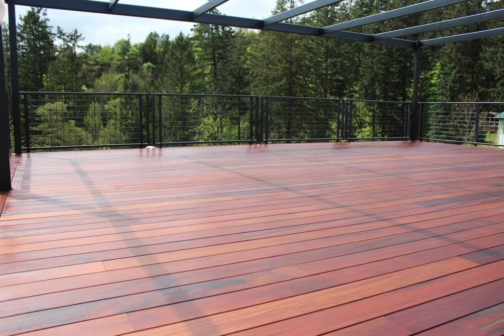 Ipe has been the gold standard for decking for decades. Unmatched durability and impeccable knot-free grain structure have made it the first choice of builders and homeowners. Ipe has a lustrous, almost iridescent, chocolate brown to golden brown coloration and a very fine and tight grain. Its hardness is second only to massaranduba but, it is the most stable of all the hardwood species. Ipe lumber is available in all common sizes and some custom profiles for handrail. Seattle Deck Supply sources from reputable importers that have tight chains of custody. Your lumber will be reliably kiln-dried and of the highest First Export Quality or FEQ grade. Ipe prices have seen a steady increase since 2024, some buyers have turned to alternatives like garapa, discussed below, to mitigate cost. Ipe remains the best option though.