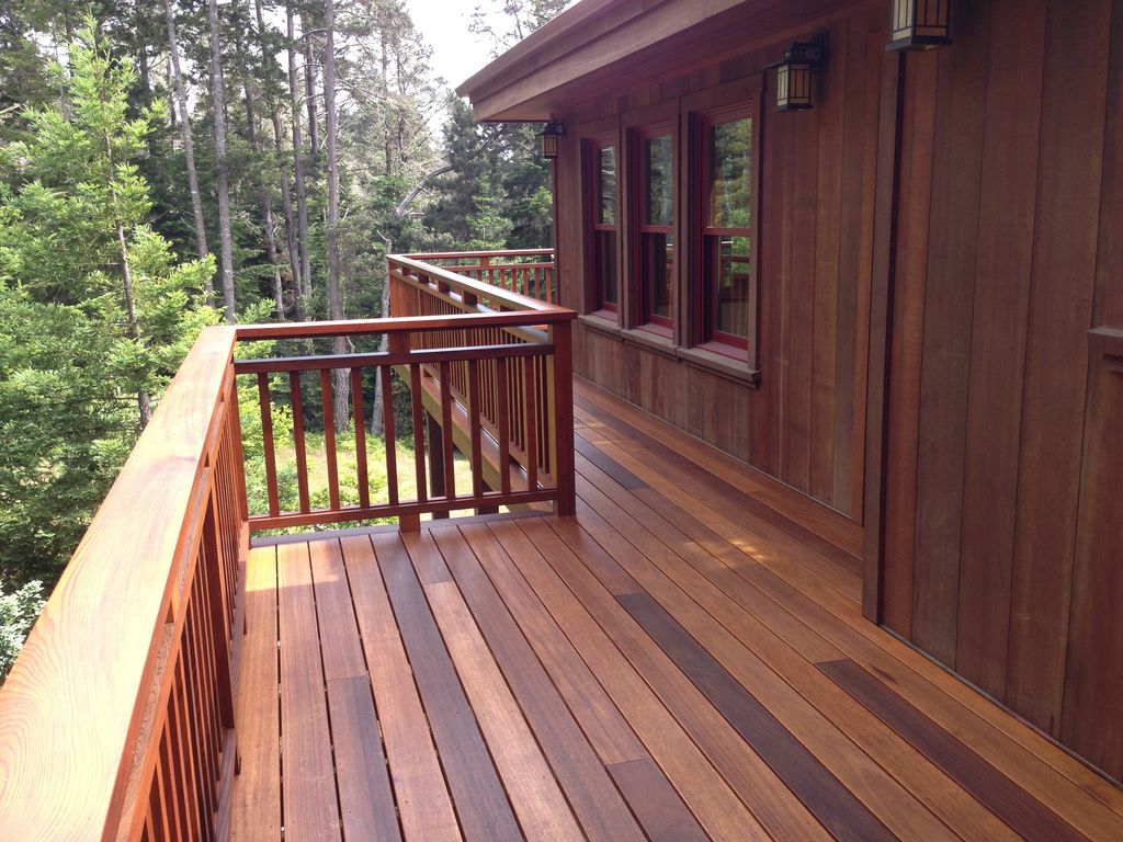 Tigerwood is a tropical hardwood from Brazil and Bolivia, although its range extends to Peru and North to Mexico. Its gorgeous and pronounced grain and color variation give it its name. Tigerwood is durable and stable, particularly when sourced through our suppliers, who have a proprietary kiln-drying strategy. Tigerwood decking is available square edge or grooved for hidden fasteners and in 4 and 6 inch widths. We recommend wax-treating all cross-grain cuts but staining is optional. Tigerwood is a sustainable forest product and not listed on CITES. All of our hardwoods come from reputable importers who comply with all environmental regulations and many of these are FSC listed.